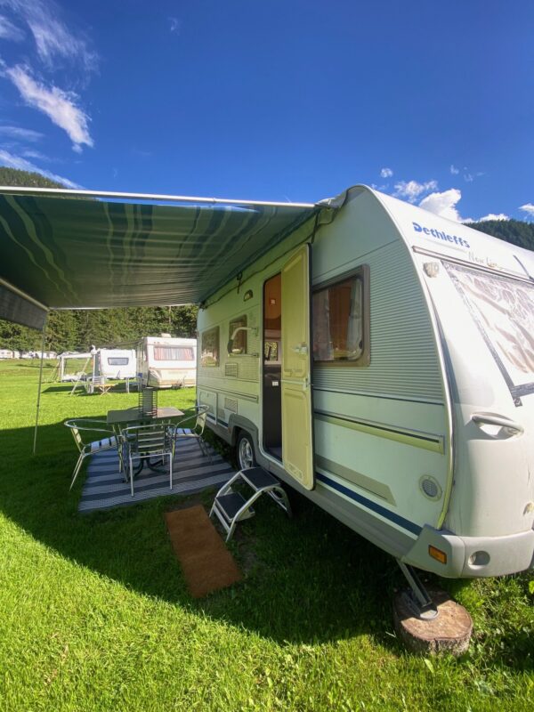 E’ possibile utilizzare la cucina e il frigorifero interno ma il bagno resta in comune con gli altri ospiti del campeggio.
