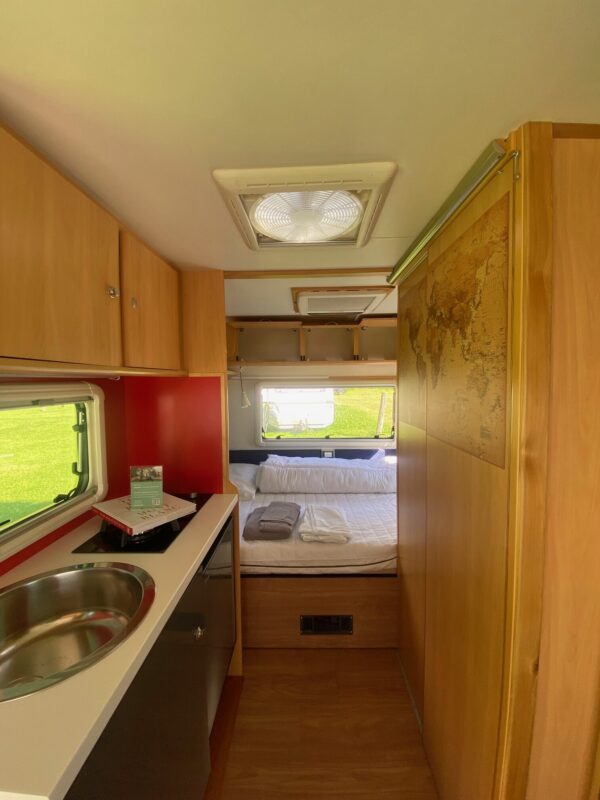 E’ possibile utilizzare la cucina e il frigorifero interno ma il bagno resta in comune con gli altri ospiti del campeggio.