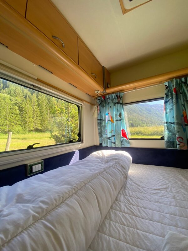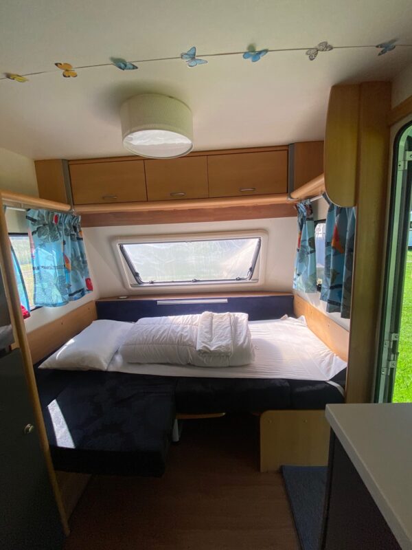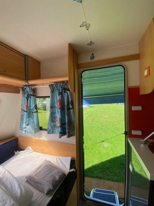La nostra Roulotte Mariposa è adatta a 2/3 persone, è fornita di piumini e cuscini ed un piccolo set di stoviglie. Non viene fornita la biancheria.