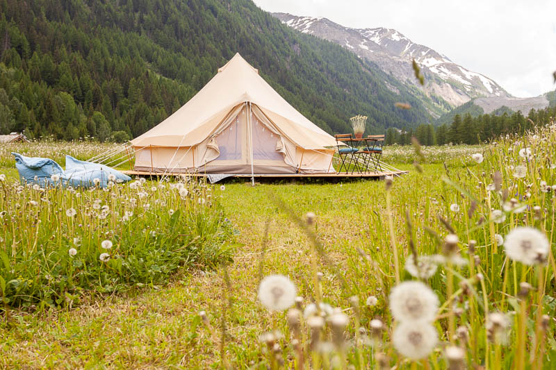 Una moderna tenda romantica, per due persone, con qualche comfort in più, per coccolarvi durante la vostra fuga nella nostra meravigliosa valle.